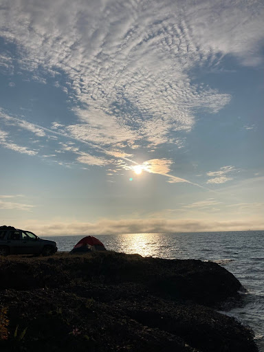 The first photo is contrasting our subjects with the vastness of the beach by only placing the sky in the upper two thirds. The second photo is giving the chair “looking space” by placing it towards the view in the left third.